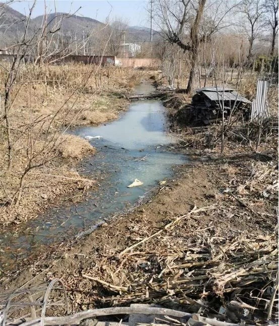在華北某濱海城市一座村中,該村西側排水渠與鮑丘河交界處,一條約60米長、8米寬的渠道被傾倒的各種垃圾堵塞,水渠已經成為名副其實的“垃圾水道”。而在該村東北水渠河長公示牌附近就有生活污水直接排入,水面漂浮綠色青苔、白色泡沫,散發刺鼻惡臭。